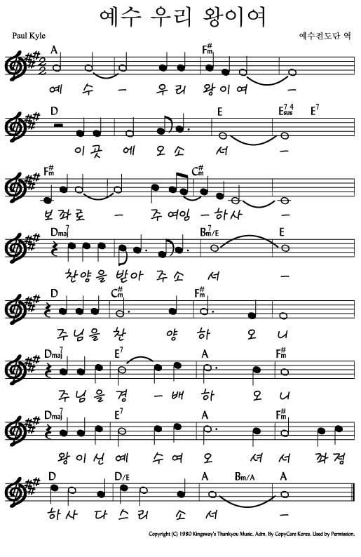예수 우리 왕이여 (왕이신 예수여 오셔서) 가사